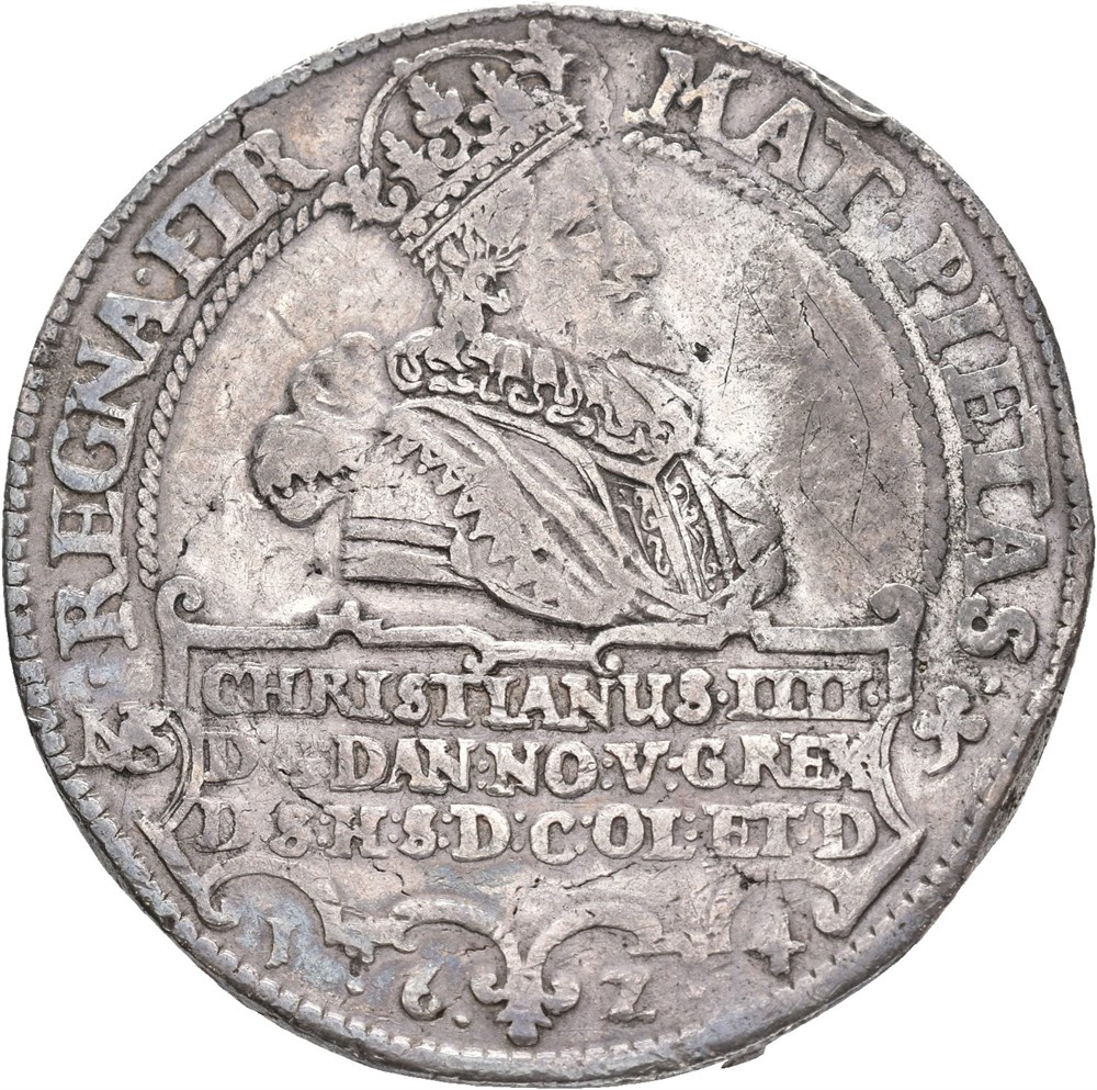 3 speciedaler 1624. København. Oppgravert på advers, små riper / tooled on the obverse, minor scratches