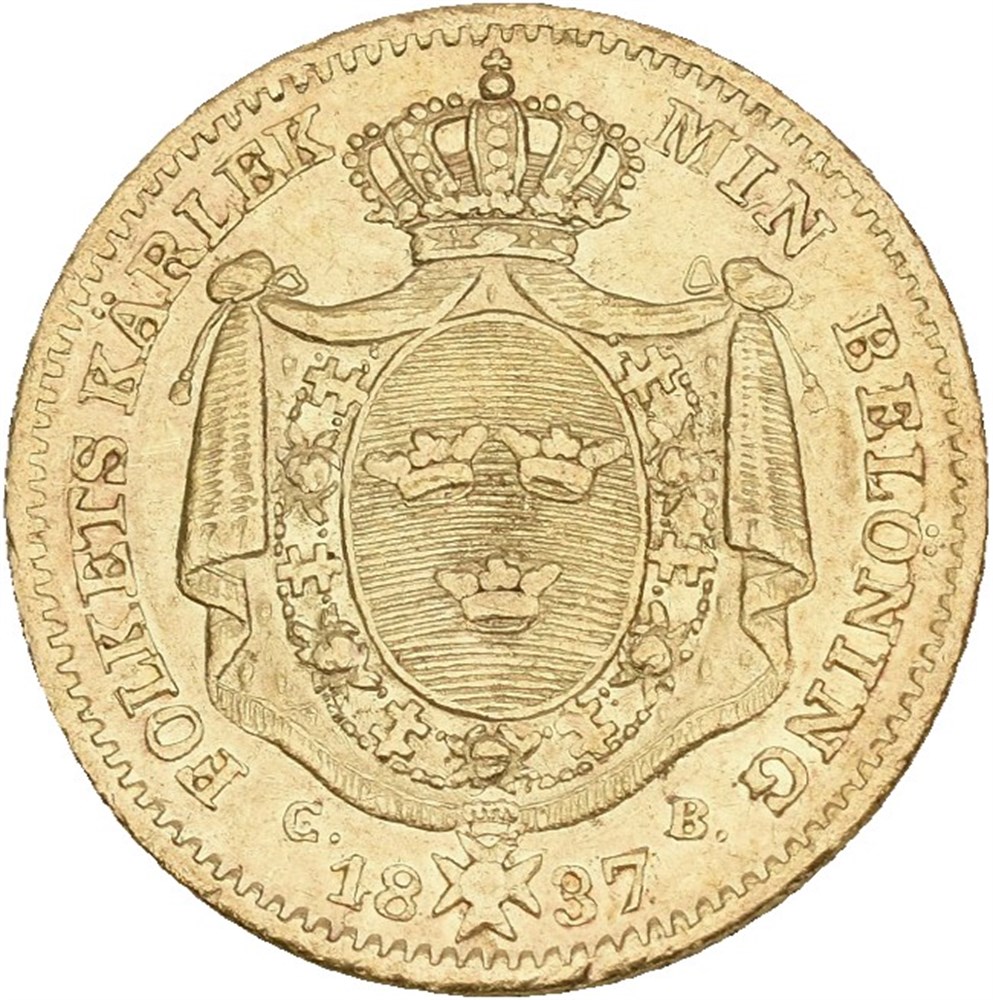 Dukat 1837 (3.48 g). Stockholm. Små riper / minor scratches