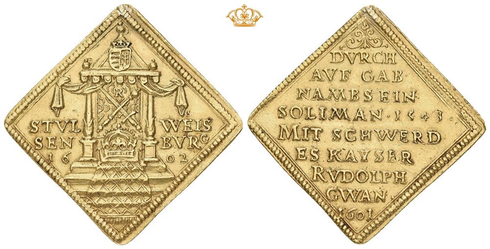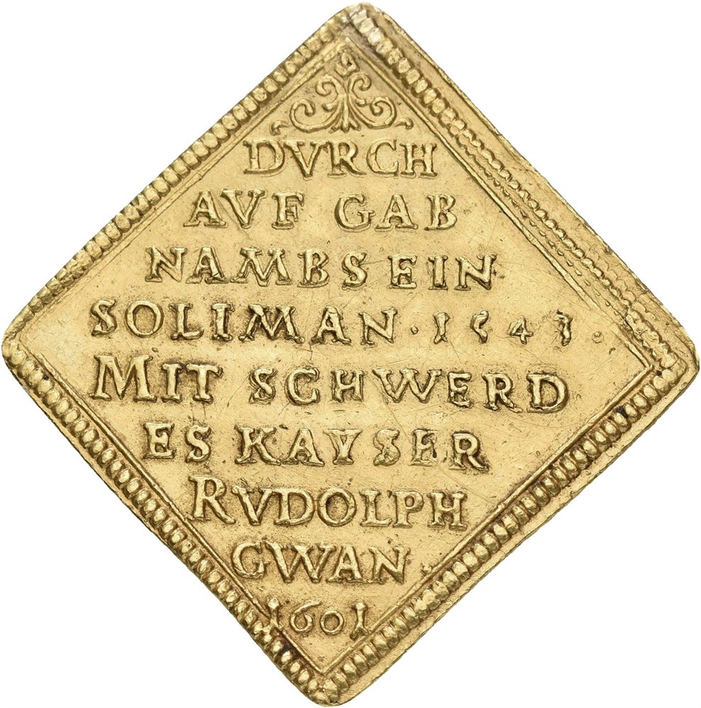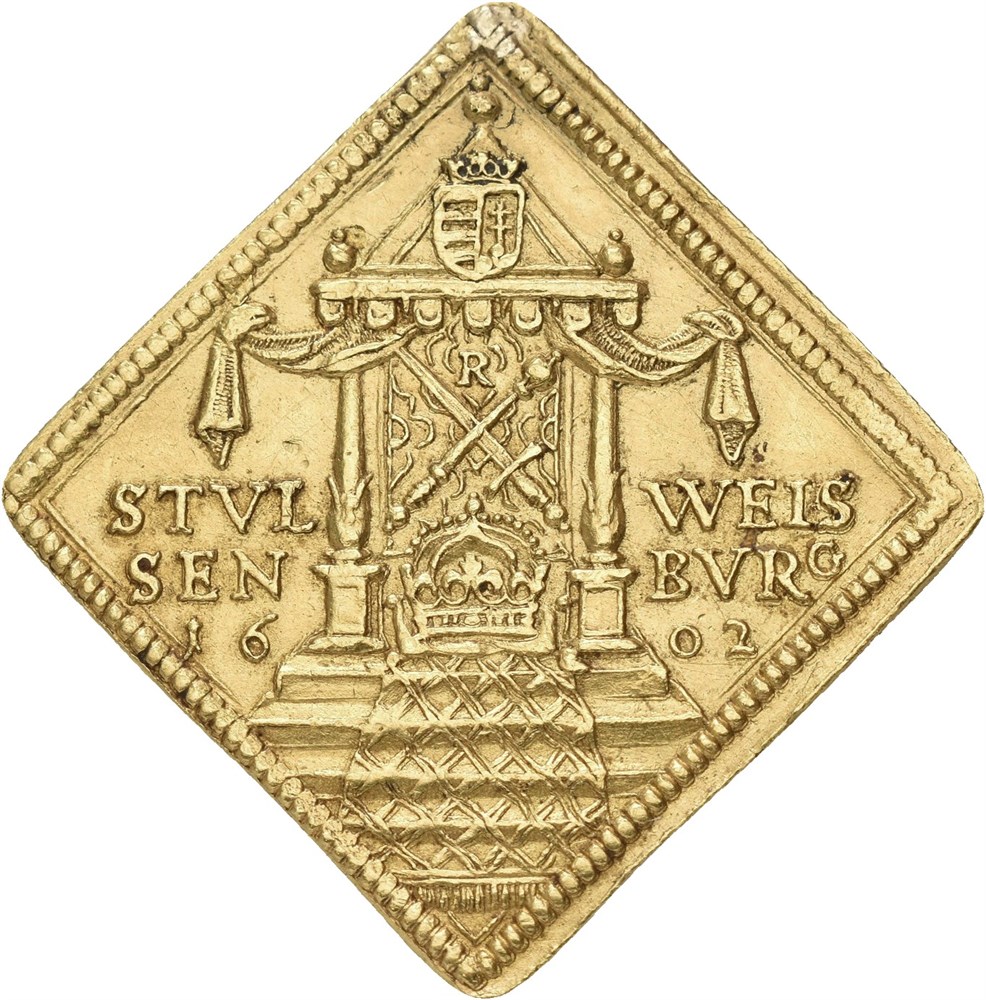 4 ducats klippe 1602 (13.72 g). Mount removed at 12 o' clock and a few hairlines on the reverse. Extremely rare and unpublished in the major reference works