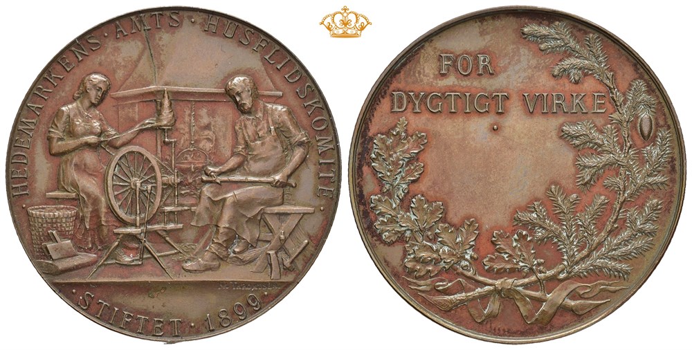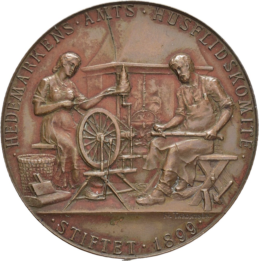 Hedemarkens Amts Husflidkomite. Stiftet 1899. Throndsen. Bronse 40 mm; 22,0 g. I originalt etui/in original box