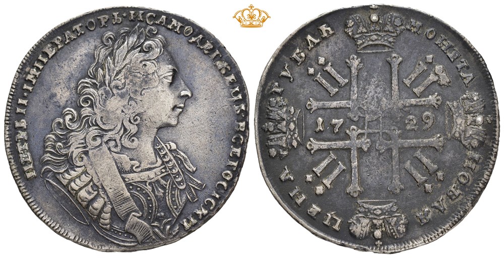 Rouble 1729 (27.72 g). Kadashevsky mint (Moscow). Deep old cabinet toning