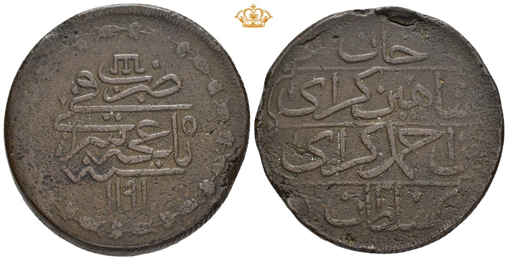 Kyrmis (5 kopecks) AH 1191, year 5 (=1781) (61.78 g). Bagchih-Serai mint. A few metal flaws along edge