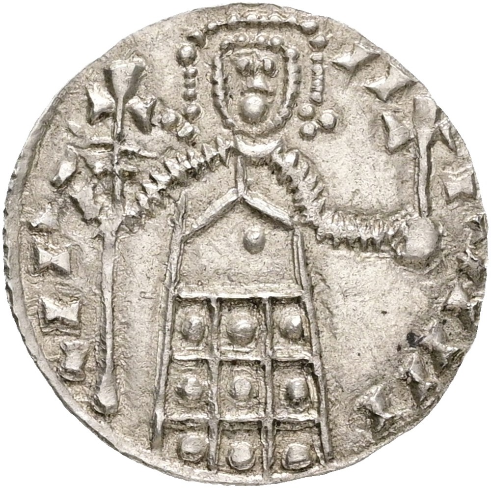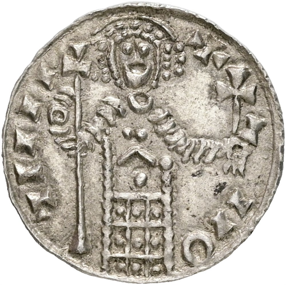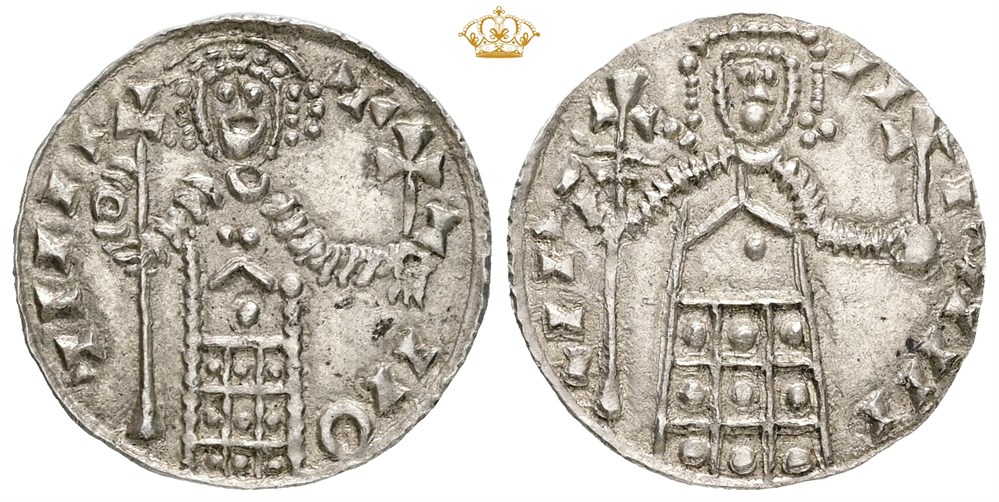 Penning u.år/n.d. (1.10 g). Lund. Et flott og tydelig eksemplar av denne byzantinsk inspirerte typen / A fine specimen of this type clearly inspired by Byzantine coins