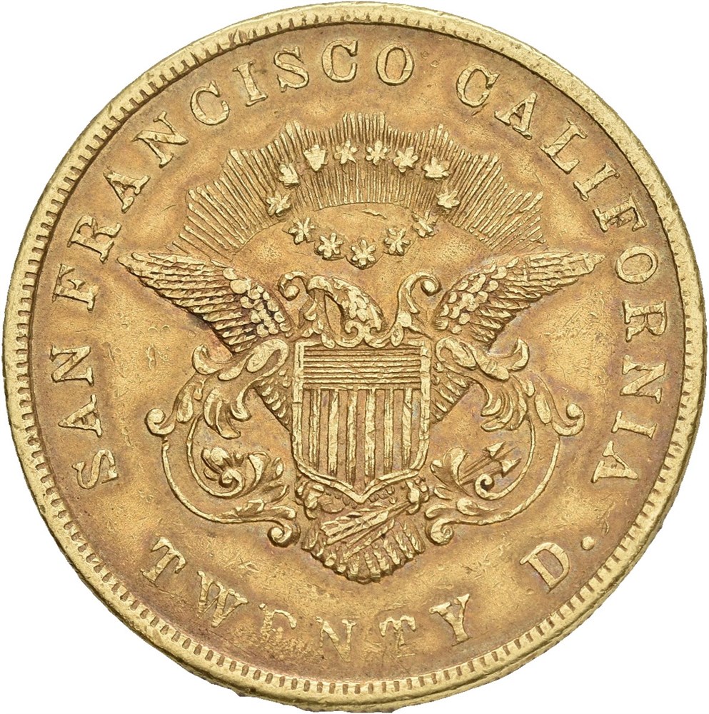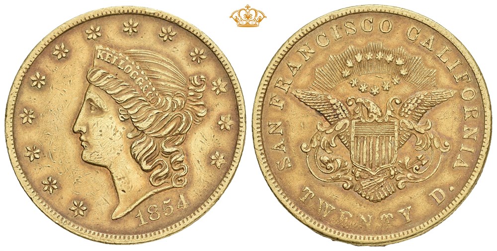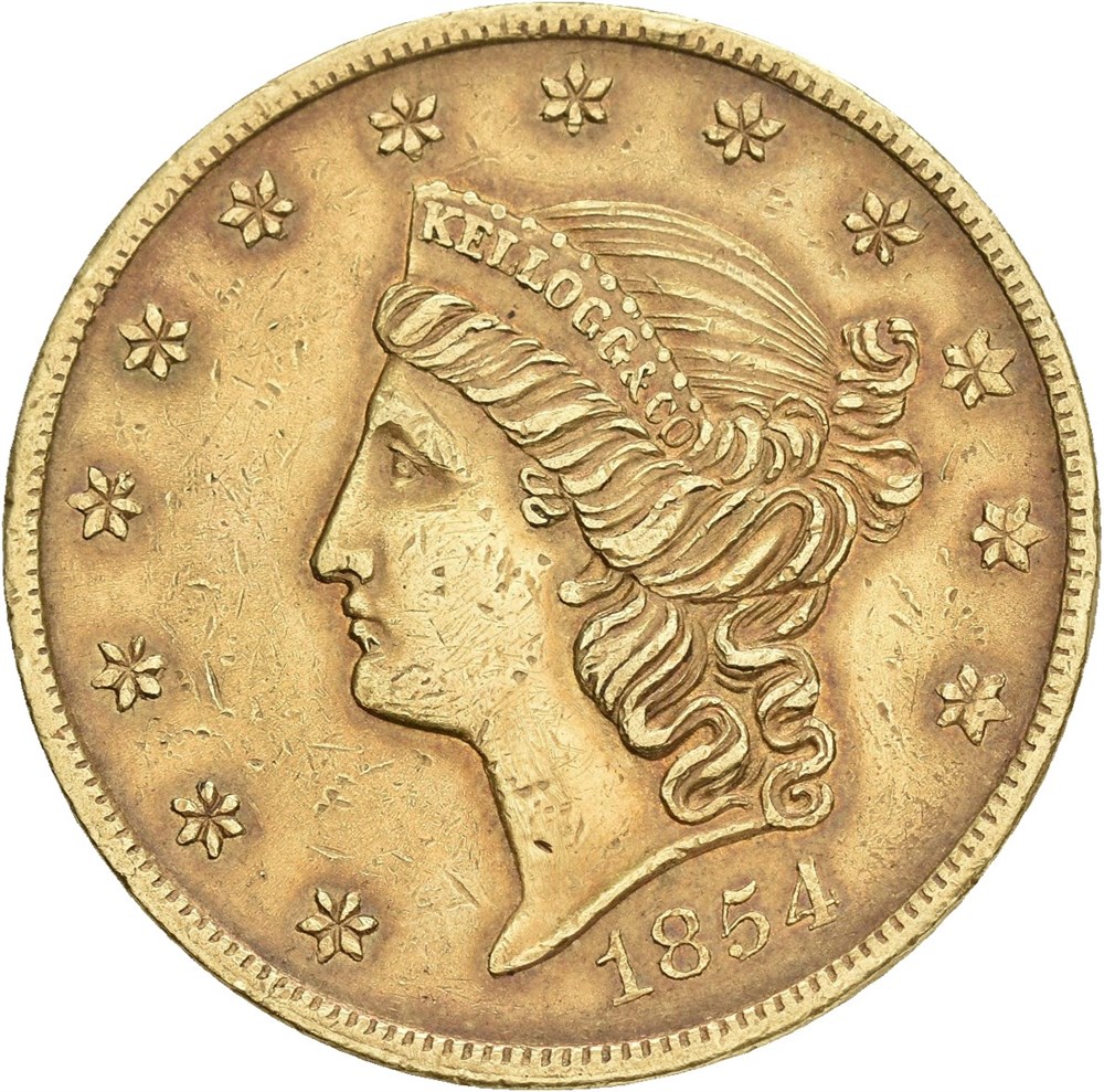 20 dollars 1854. San Francisco. "KELLOGG & CO". Toned