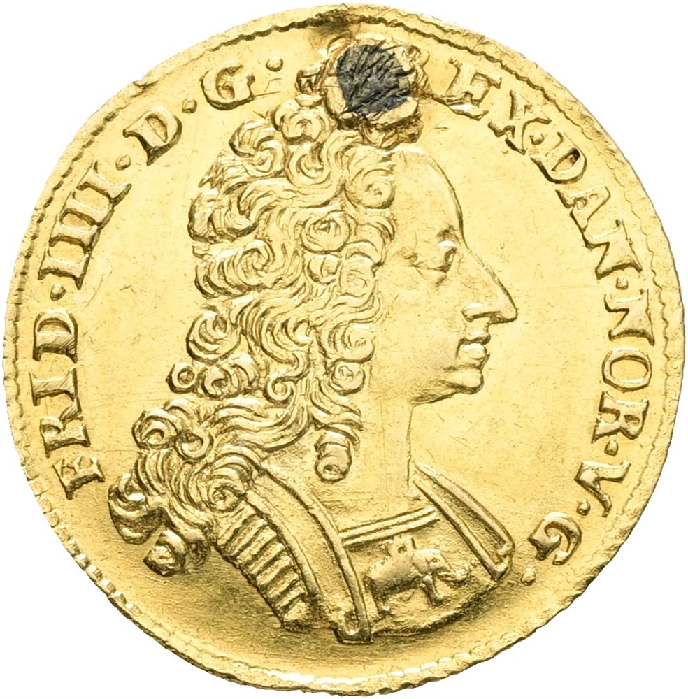 Kurantdukat / 2 rixdaler 1715 (2.87 g). København. Uvanlig årstall / rare date. Plugget / plugged