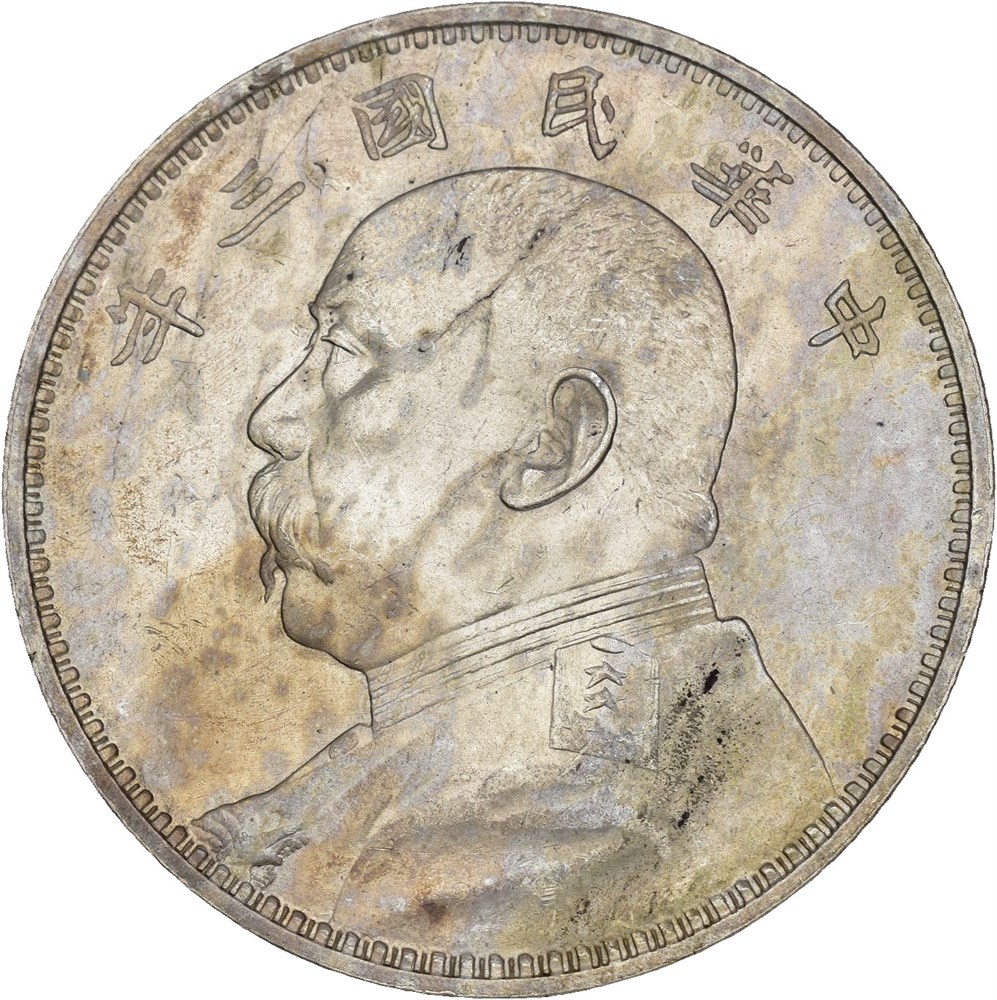 Yuan Shih-kai, Dollar n.d. year 3 (1914). Mottled toning on obverse