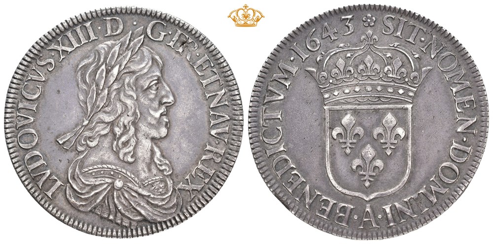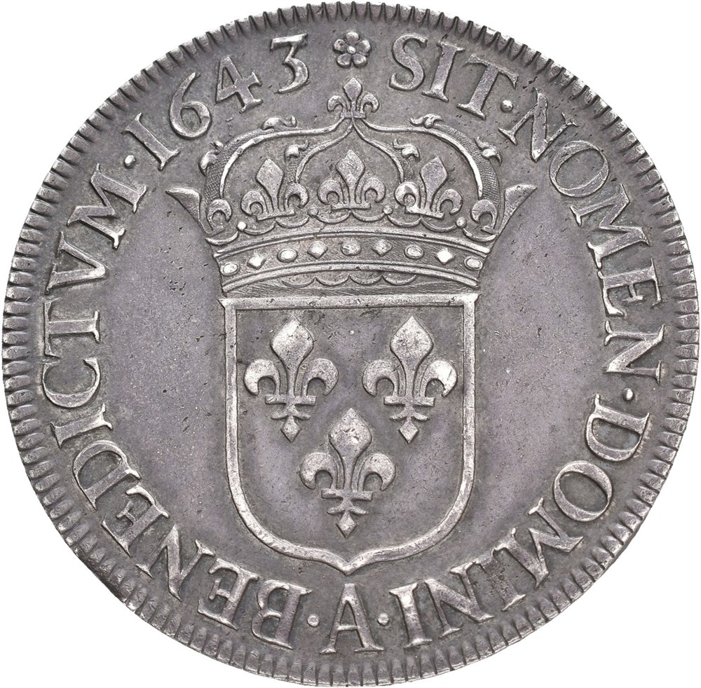 Ecu d'argent 1643 A (27.26 g). Paris mint. Minor flan flaw on obverse. Wonderfully toned