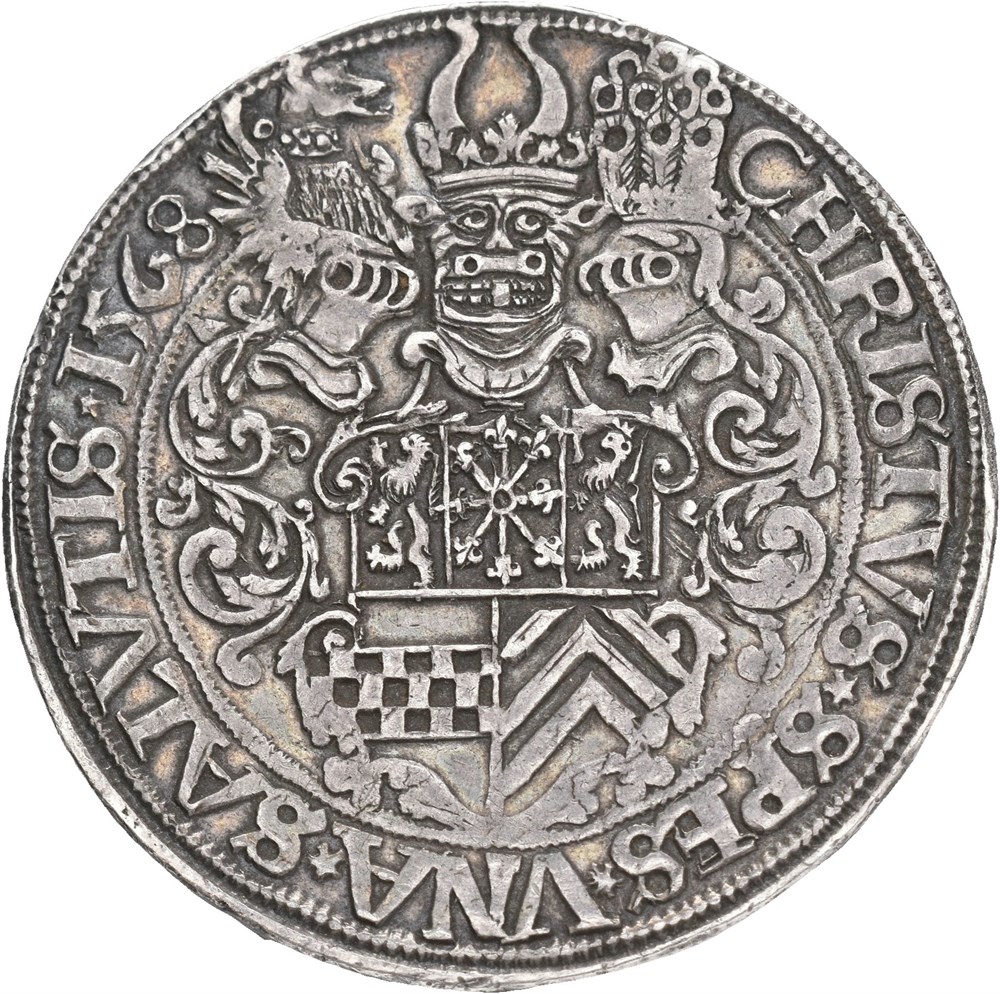 2 taler 1568 (57.74 g). Mülheim mint. Attractively toned. Apparently unique