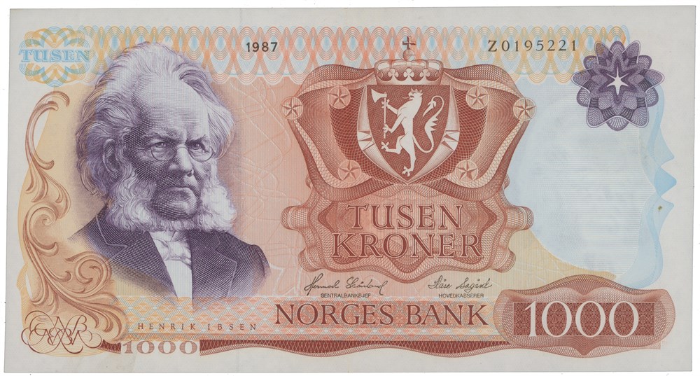 - 1000 kroner 1987. Z0195221. Erstatningsseddel. (14691674)