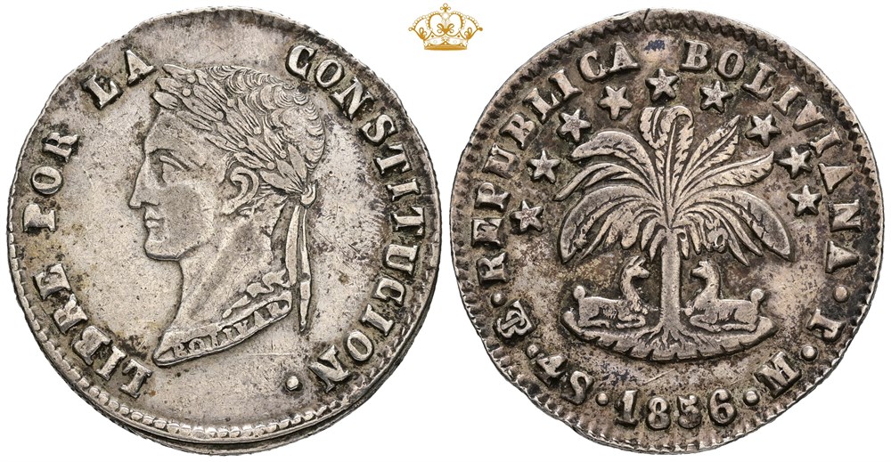 4 soles 1856 PTS MJ (13.44 g). Potosi mint