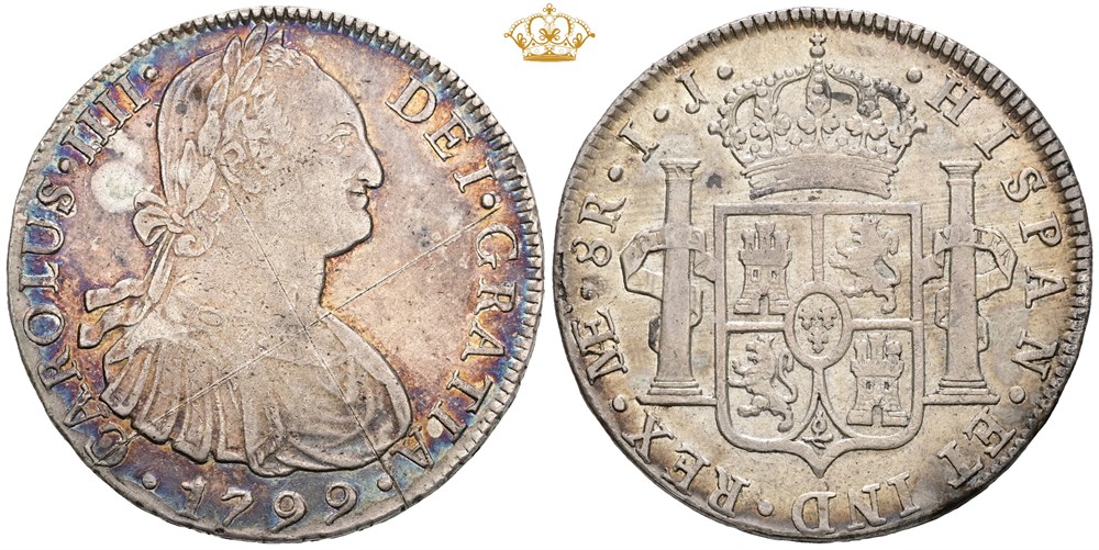 8 reales 1799 LIMAE IJ (26.68 g). Lima mint. Graffiti on obverse
