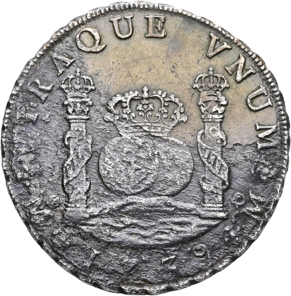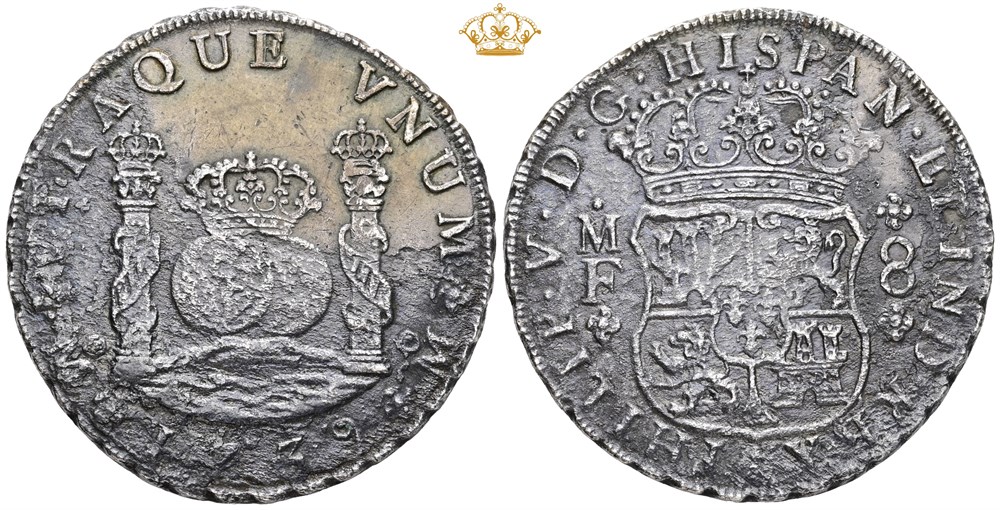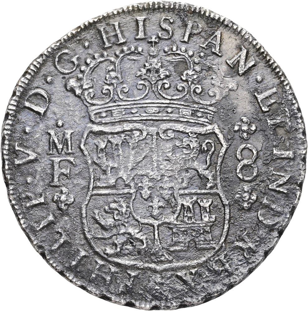 8 reales 1739 Mo MF (23.90 g). Mexico City mint. Saltwater damage. Shipwreck coin recovered from 'Hollandia'. With certificate of origin
