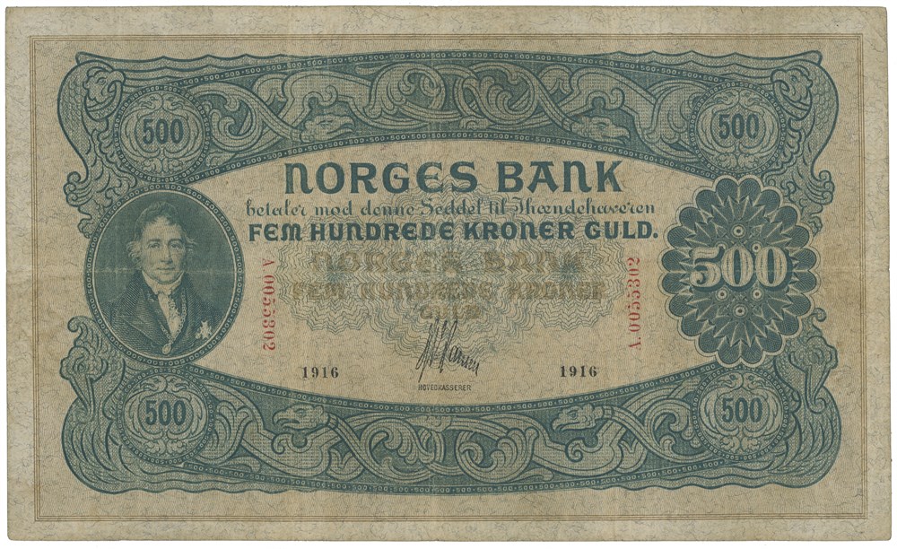 500 kroner 1916. A.0055302. Meget sjelden/very rare.
