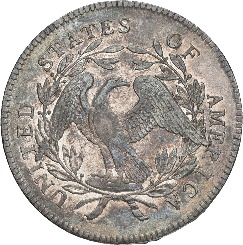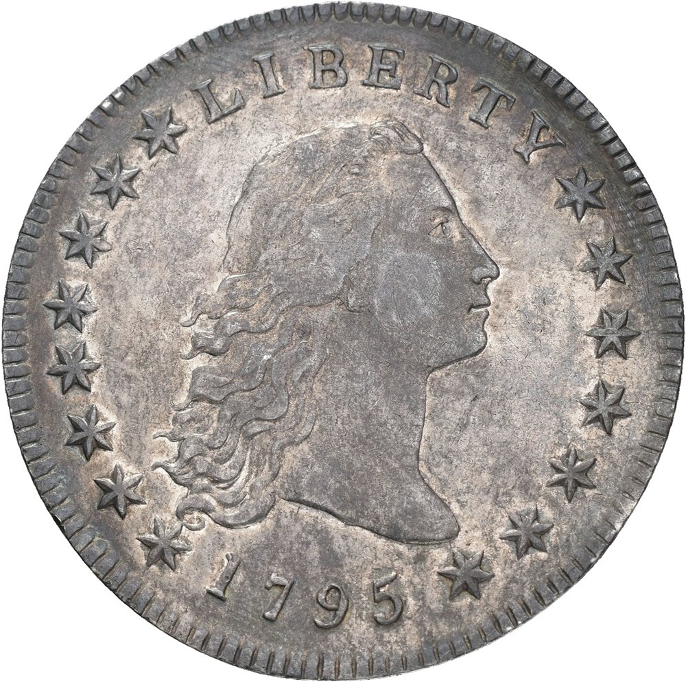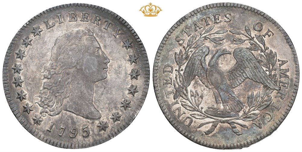 Dollar 1795 "Flowing Hair". Philadelphia mint. A considerable amount of original mint luster and with a vibrant blue iridescent toning