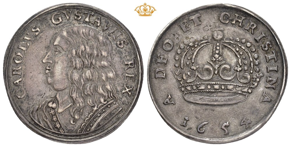 2 mark 1654 (10.19 g). Stockholm. Kastemynt til kongens kroning. Pent patineret eksemplar / wonderfully toned