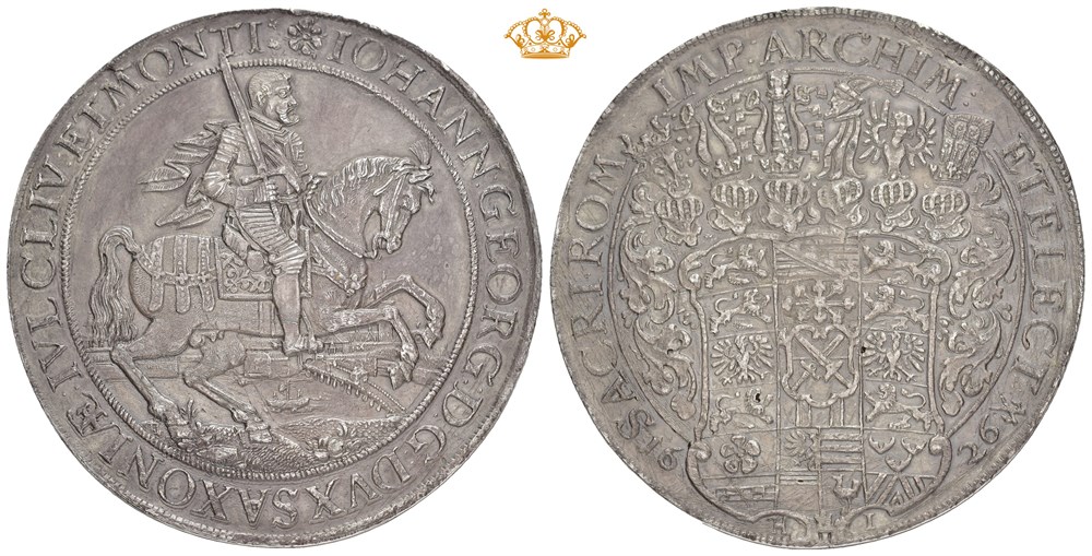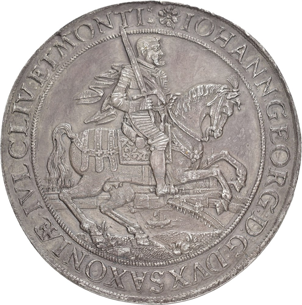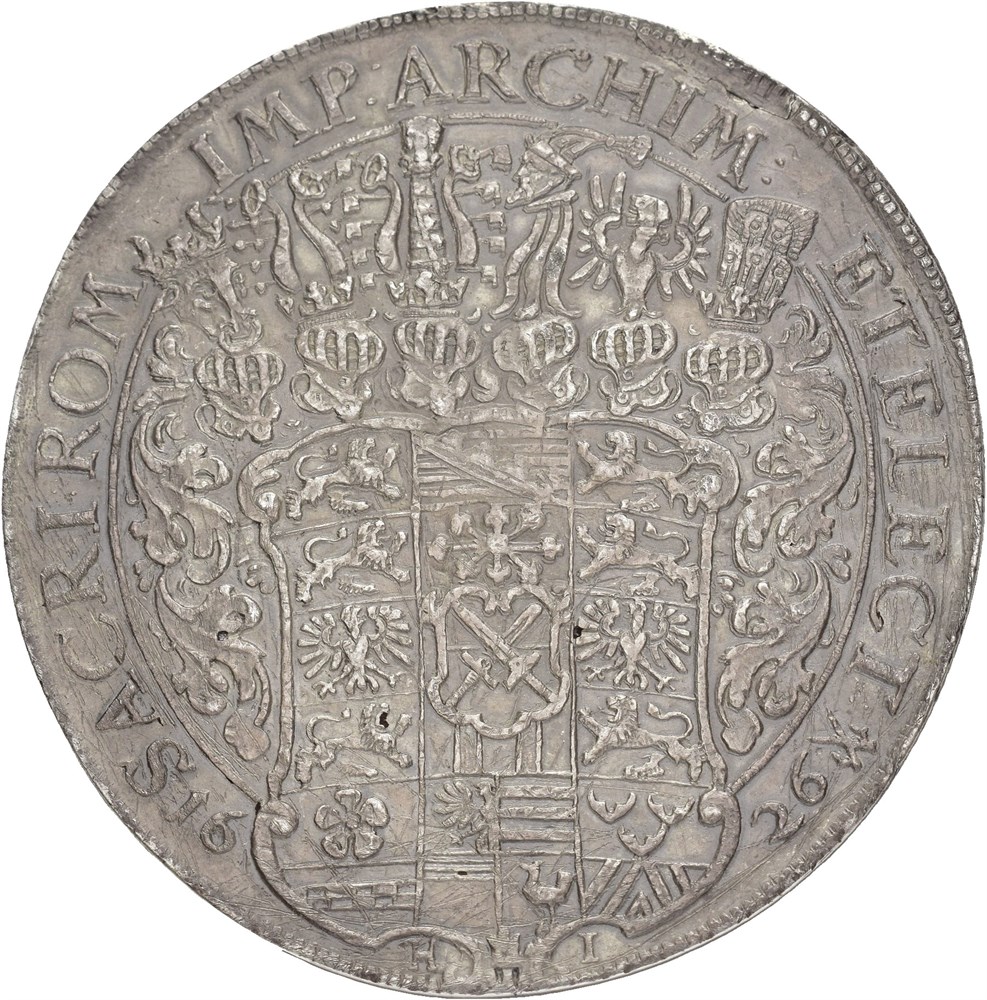 3 taler 1626 HI (85.75 g). Dresden mint. Tooling around the edge and some old cleaning scratches in fields. Rare