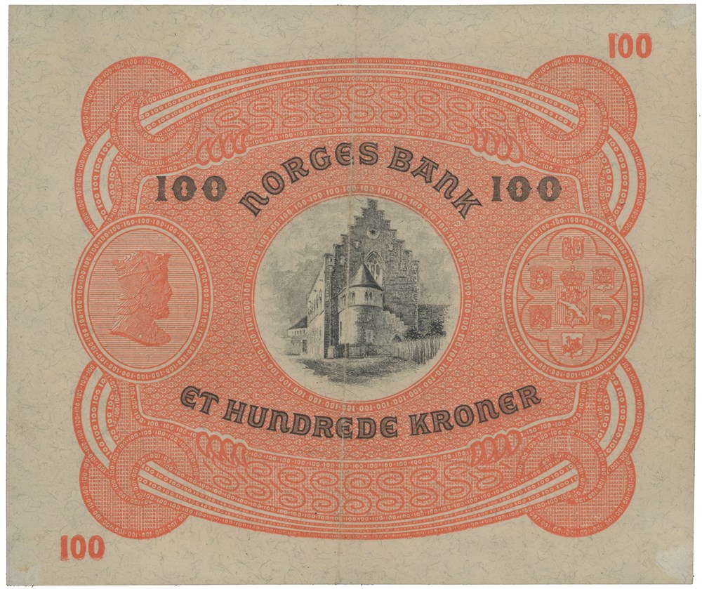 100 kroner 1921. A.4798262. Små tynnheter i hjørnene/thin paper in corners.