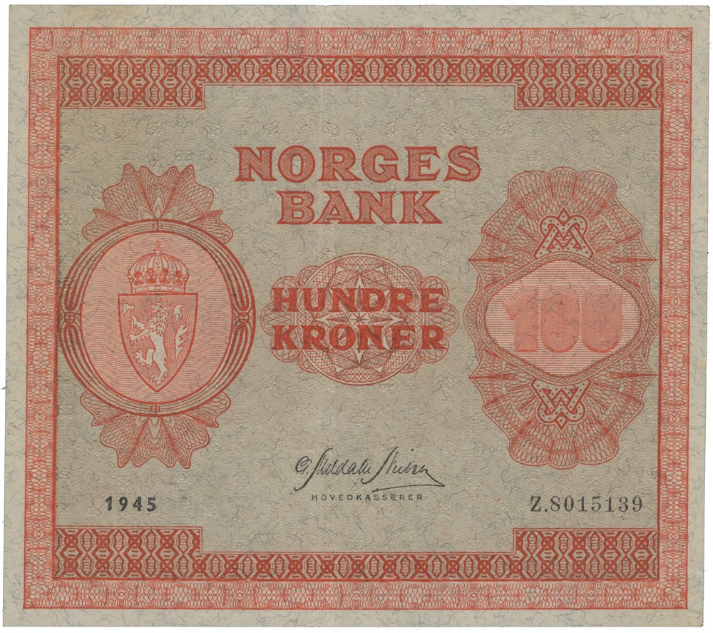 100 kroner 1945. Z.8015139. Erstatningsseddel