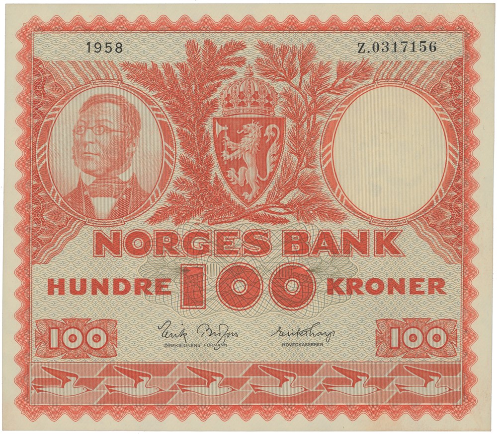 100 kroner 1958. Z.0317156. Erstatningsseddel/replacement note (0-million).