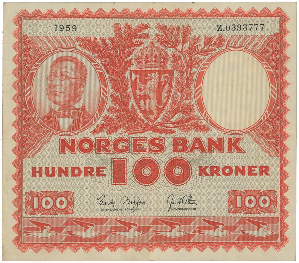 100 kroner 1959. Z.0393777. Erstatningsseddel