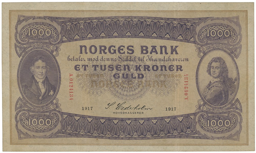 13. All payments must be arranged in NOK (Norwegian Kroner). The sale is completed upon receipt of payment, at the latest 7 days after the bidder has received the invoice. In the case of later payment, 1 % interest is added at the beginning of every month. The buyer is responsible for paying all bank charges and shipping and insurance costs. If payment has not been received within 30 days after the auction, the auctioneer reserves the right to sell any unpaid lot(s) if necessary. The auctioneer alone will decide how such sale is conducted and the sale will always be at the risk/cost of the original buyer. Such sales may take place without further notice and the original buyer is responsible for any economic loss due to lost commission or reduced sale price.