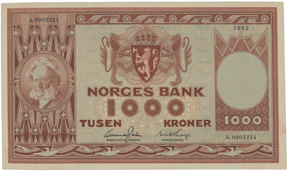 13. All payments must be arranged in NOK (Norwegian Kroner). The sale is completed upon receipt of payment, at the latest 7 days after the bidder has received the invoice. In the case of later payment, 1 % interest is added at the beginning of every month. The buyer is responsible for paying all bank charges and shipping and insurance costs. If payment has not been received within 30 days after the auction, the auctioneer reserves the right to sell any unpaid lot(s) if necessary. The auctioneer alone will decide how such sale is conducted and the sale will always be at the risk/cost of the original buyer. Such sales may take place without further notice and the original buyer is responsible for any economic loss due to lost commission or reduced sale price.