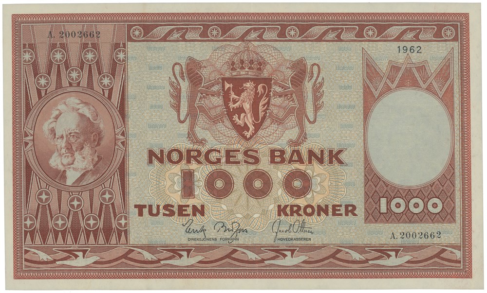 13. All payments must be arranged in NOK (Norwegian Kroner). The sale is completed upon receipt of payment, at the latest 7 days after the bidder has received the invoice. In the case of later payment, 1 % interest is added at the beginning of every month. The buyer is responsible for paying all bank charges and shipping and insurance costs. If payment has not been received within 30 days after the auction, the auctioneer reserves the right to sell any unpaid lot(s) if necessary. The auctioneer alone will decide how such sale is conducted and the sale will always be at the risk/cost of the original buyer. Such sales may take place without further notice and the original buyer is responsible for any economic loss due to lost commission or reduced sale price.