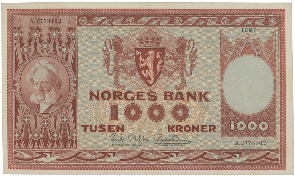 13. All payments must be arranged in NOK (Norwegian Kroner). The sale is completed upon receipt of payment, at the latest 7 days after the bidder has received the invoice. In the case of later payment, 1 % interest is added at the beginning of every month. The buyer is responsible for paying all bank charges and shipping and insurance costs. If payment has not been received within 30 days after the auction, the auctioneer reserves the right to sell any unpaid lot(s) if necessary. The auctioneer alone will decide how such sale is conducted and the sale will always be at the risk/cost of the original buyer. Such sales may take place without further notice and the original buyer is responsible for any economic loss due to lost commission or reduced sale price.