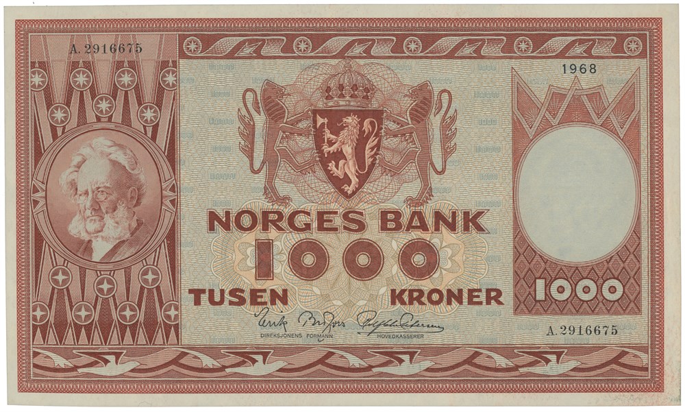 13. All payments must be arranged in NOK (Norwegian Kroner). The sale is completed upon receipt of payment, at the latest 7 days after the bidder has received the invoice. In the case of later payment, 1 % interest is added at the beginning of every month. The buyer is responsible for paying all bank charges and shipping and insurance costs. If payment has not been received within 30 days after the auction, the auctioneer reserves the right to sell any unpaid lot(s) if necessary. The auctioneer alone will decide how such sale is conducted and the sale will always be at the risk/cost of the original buyer. Such sales may take place without further notice and the original buyer is responsible for any economic loss due to lost commission or reduced sale price.