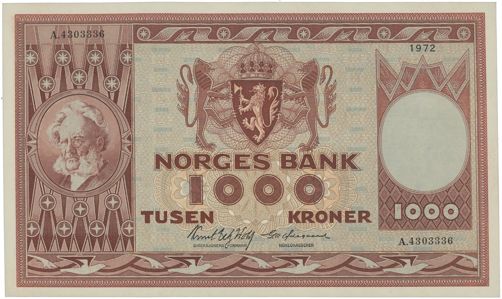 13. All payments must be arranged in NOK (Norwegian Kroner). The sale is completed upon receipt of payment, at the latest 7 days after the bidder has received the invoice. In the case of later payment, 1 % interest is added at the beginning of every month. The buyer is responsible for paying all bank charges and shipping and insurance costs. If payment has not been received within 30 days after the auction, the auctioneer reserves the right to sell any unpaid lot(s) if necessary. The auctioneer alone will decide how such sale is conducted and the sale will always be at the risk/cost of the original buyer. Such sales may take place without further notice and the original buyer is responsible for any economic loss due to lost commission or reduced sale price.