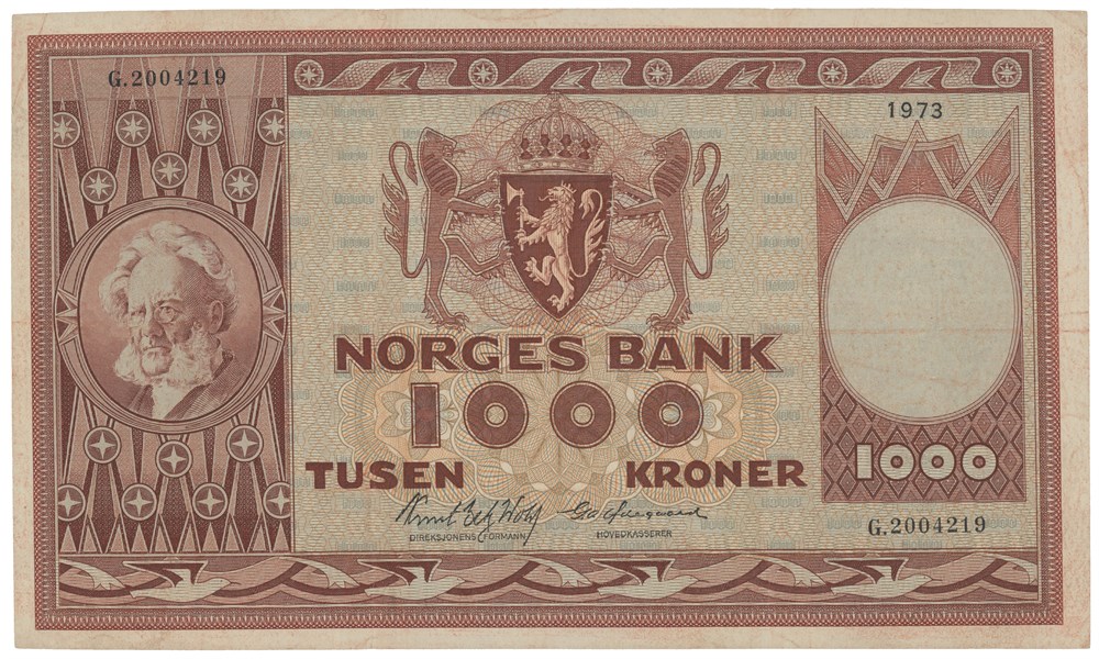 1000 kroner 1973. G.2004219. Erstatningsseddel.