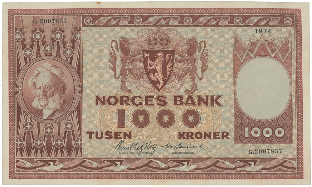 - 1000 kroner 1974. G.2007837. Erstatningsseddel. (14774620)