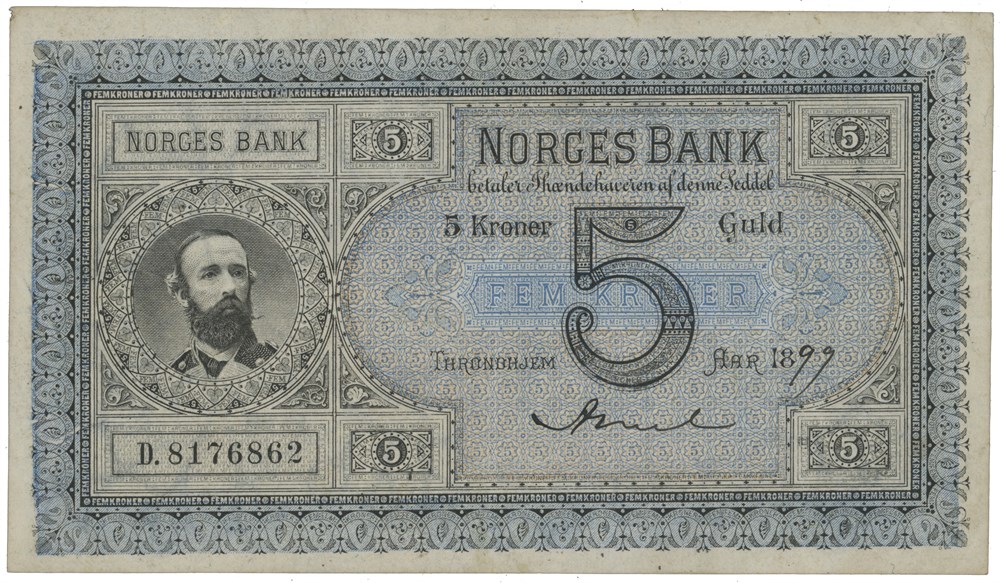 - 5 kroner 1899. D.8176862. Signert Arnet. (14777962)