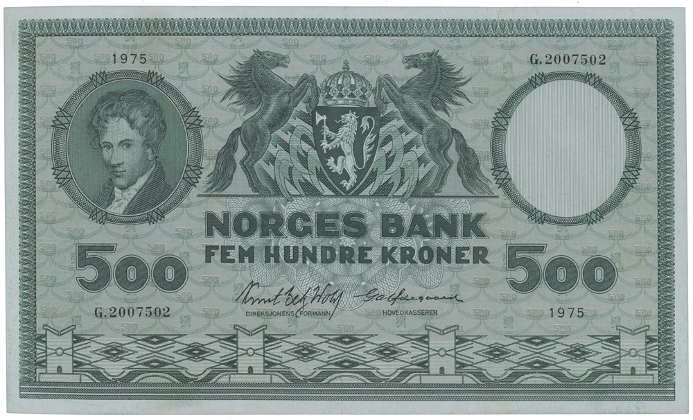 500 kroner 1975. G.2007502. Erstatningsseddel.