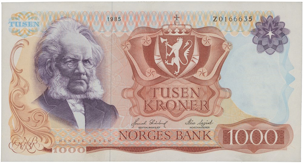 - 1000 kroner 1985. Z0166635. Erstatningsseddel (14780165)