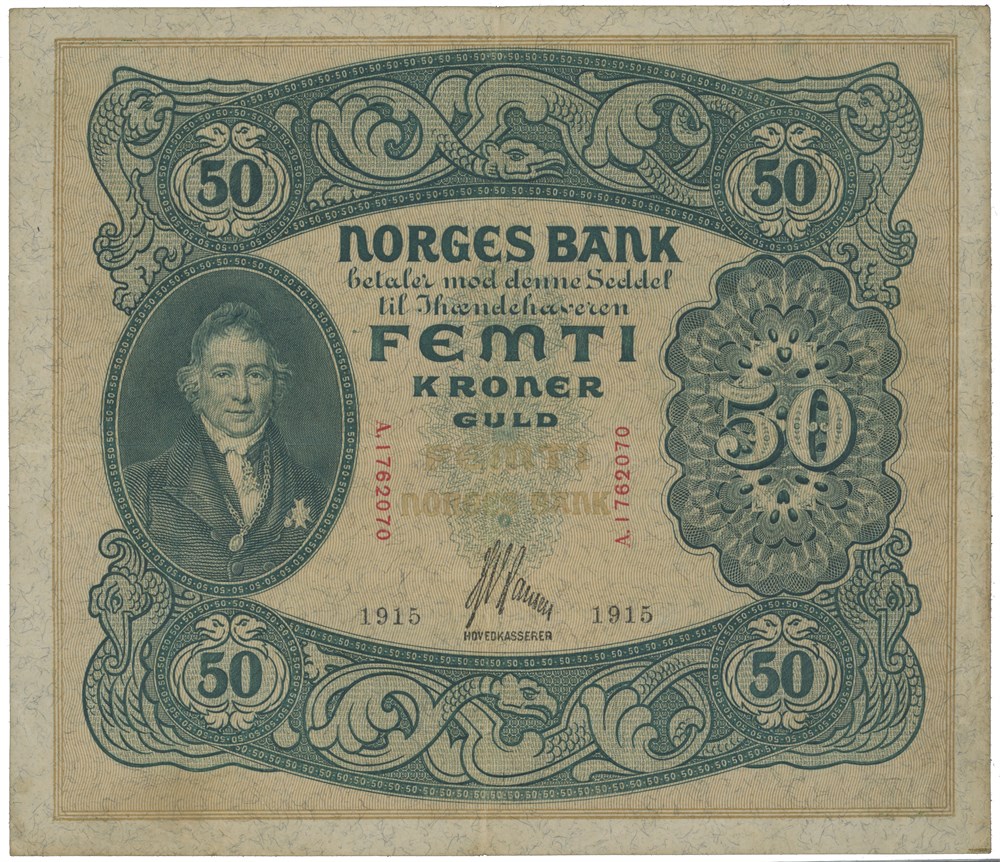 50 kroner 1915. A.1762070. Sjelden/rare.