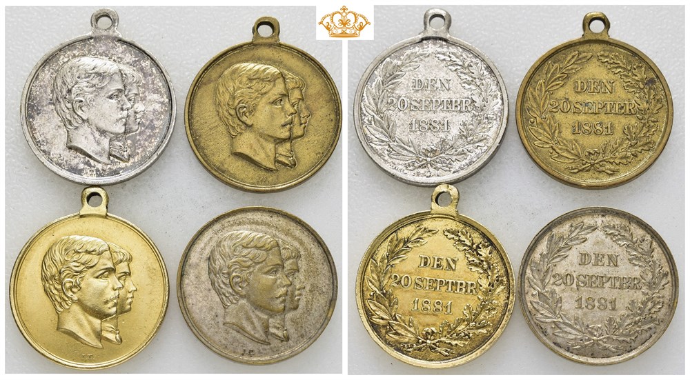 Kronprinds Gustav Kronprindsesse Victoria 1881, lot 4 medaljer