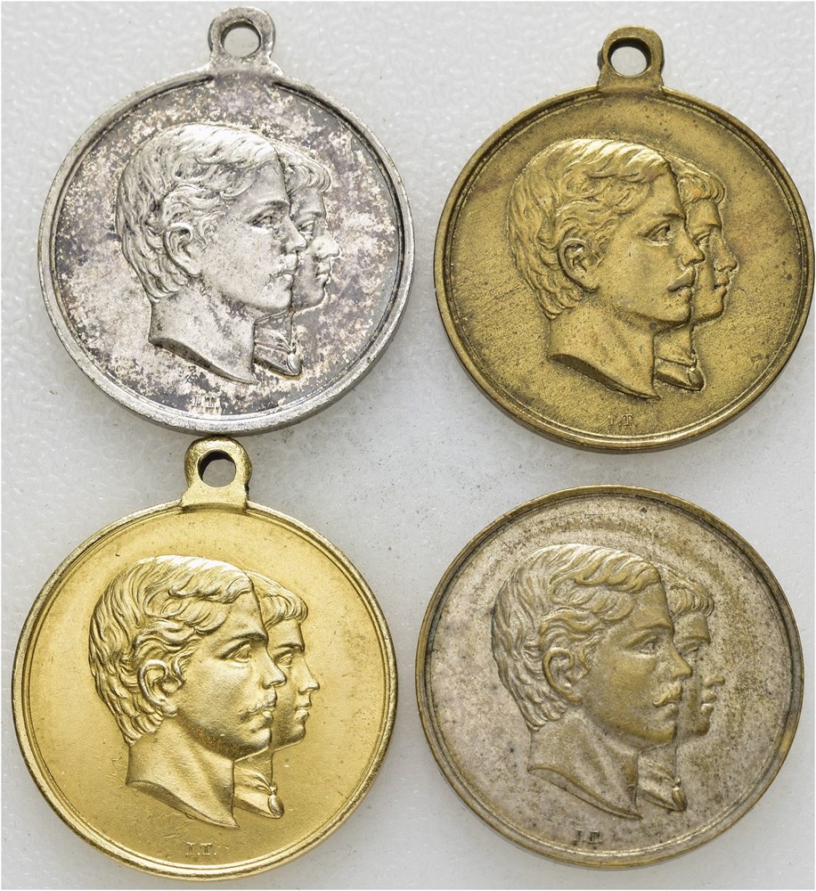 Krondprinds Gustav Kronprindsesse Victoria 1881, lot 4 medaljer Sølv m/h, Forgylt sølv m/h, Bronse m/h og forsølvet bronse u/h, 21 mm