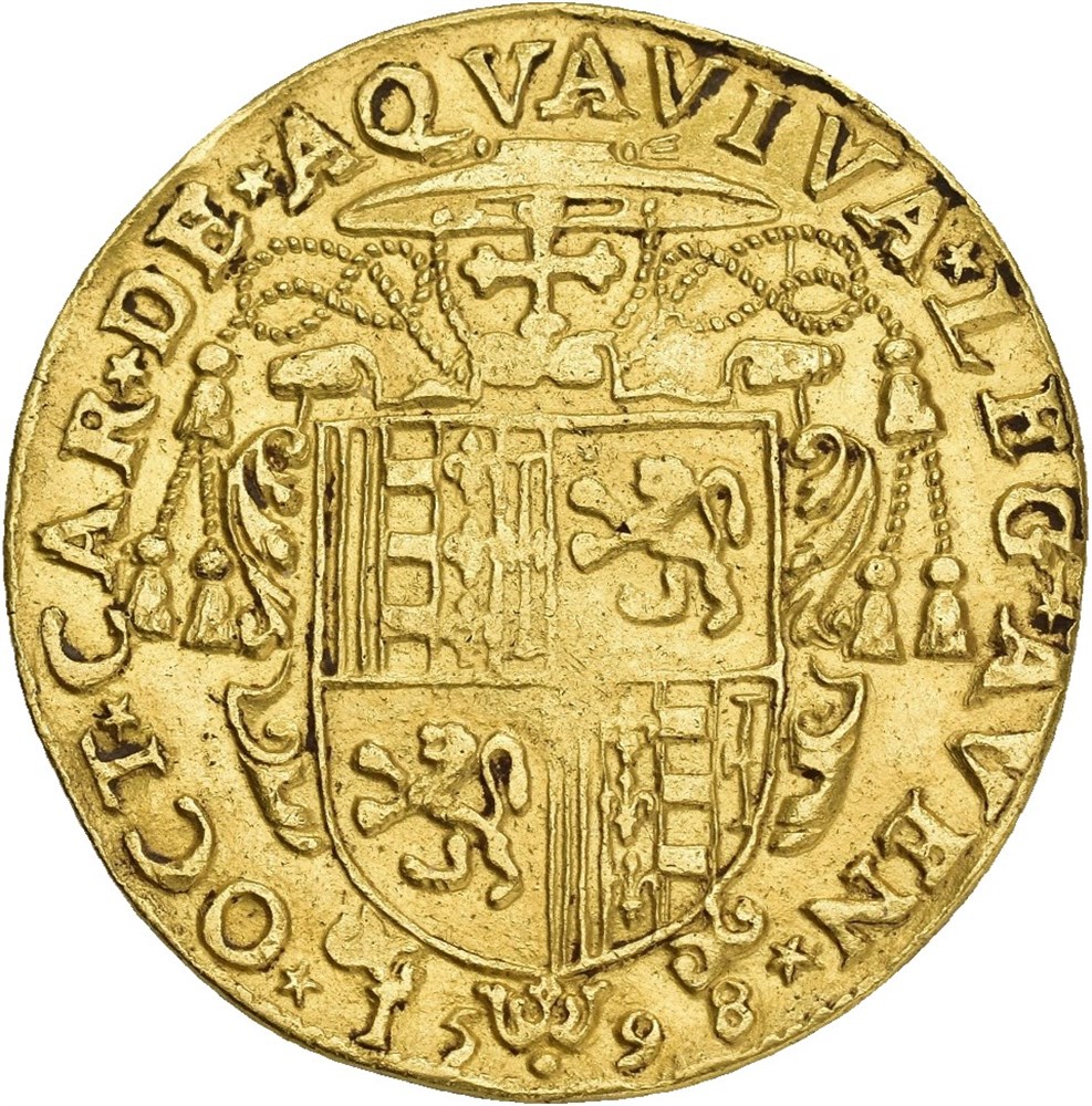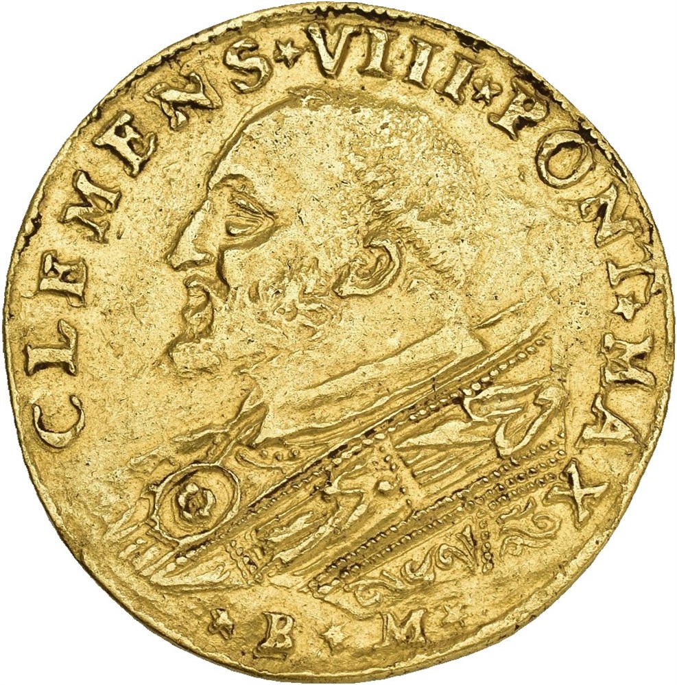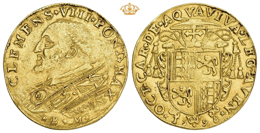 Quadrupla 1598 BM (13.10 g). Avignon mint. Light gold toning and minor traces of earthen deposits. Very rare