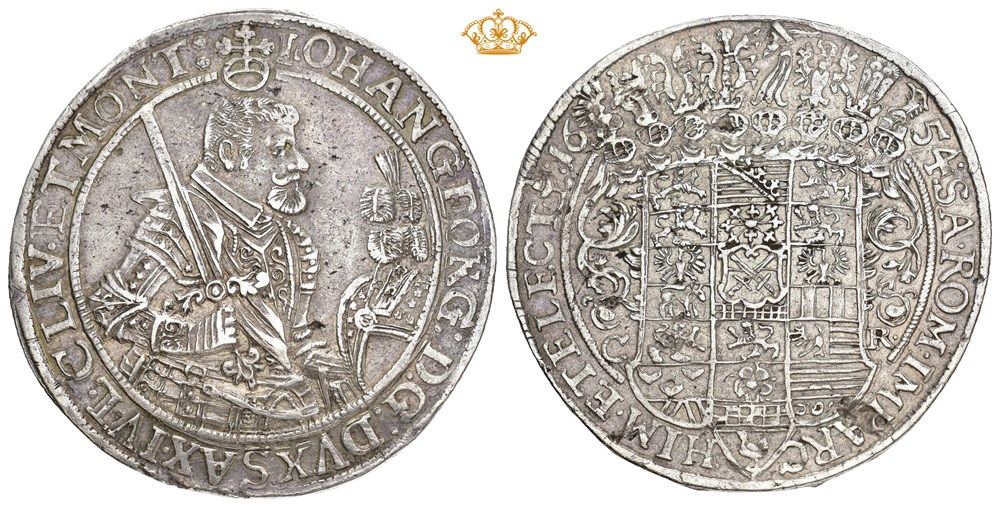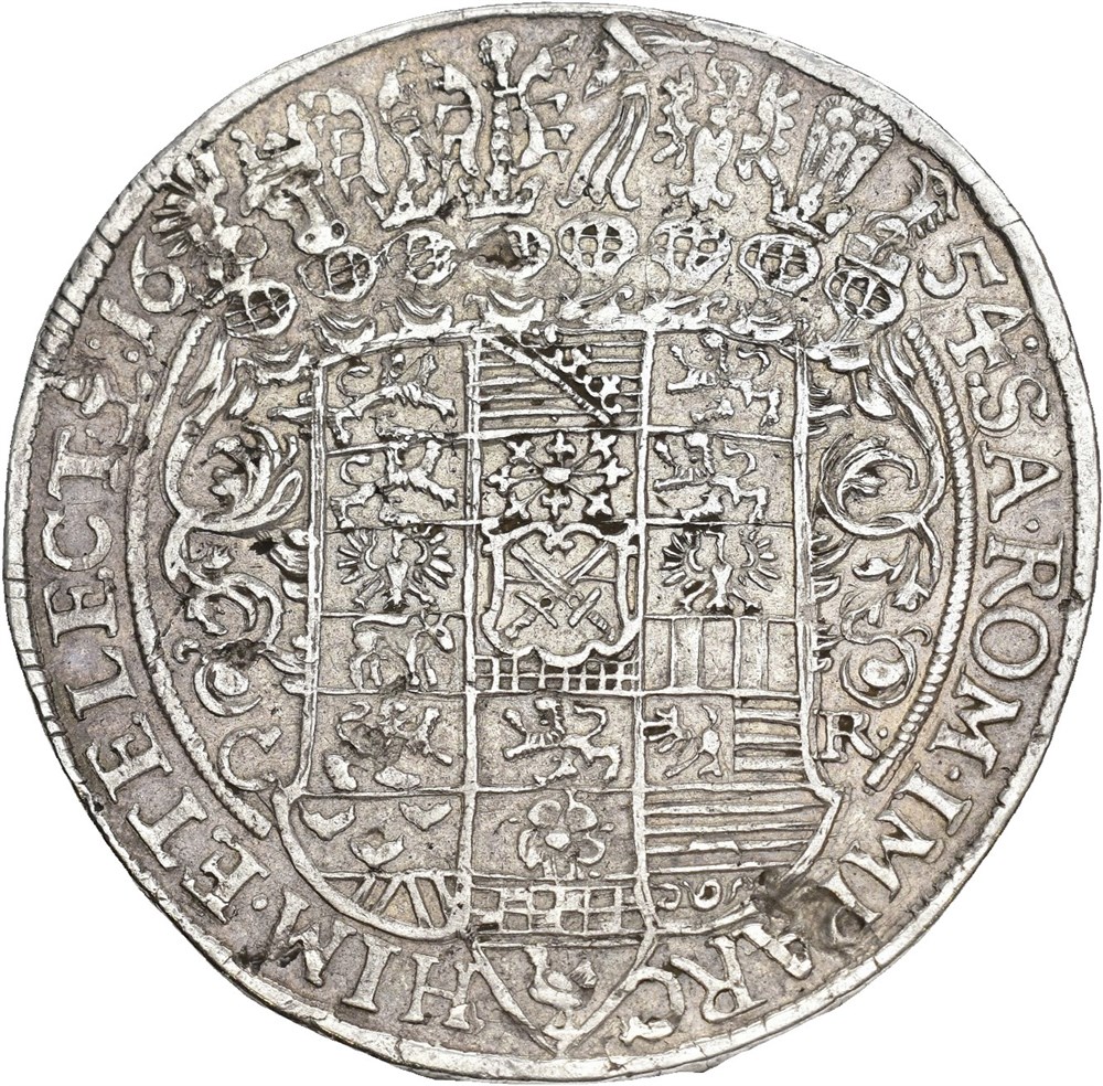 2 taler 1654 (57.85 g). Dresden mint. Minor edge flaws and a few metal flaws in fields. Rare
