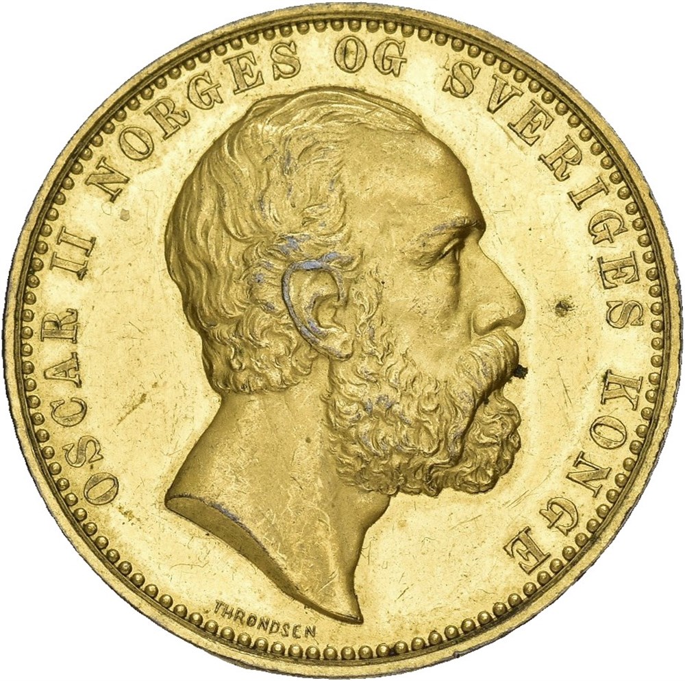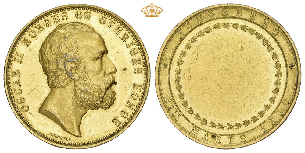 Oscar II: Kongsberg 31te marts 1890. Throndsen. Forgylt bronse 31 mm; 15,13 g