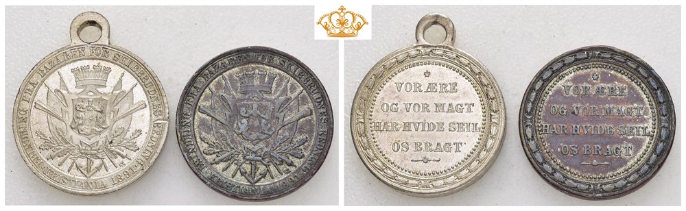 Erindring fra bazaren for skibbrudnes redning 1891. Lot 2 medaljer