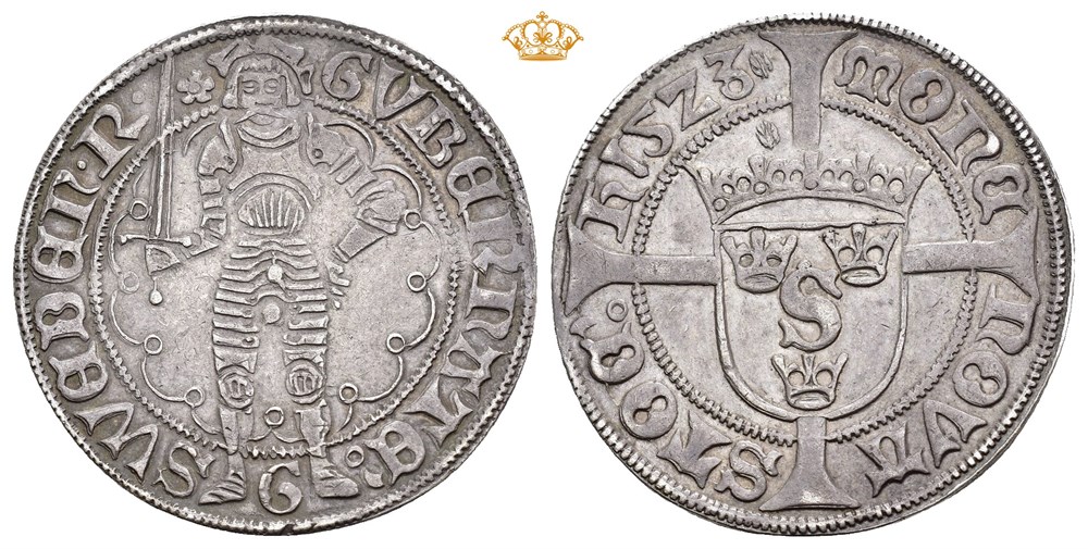 1/2 gyllen 1523 (12.88 g). Stockholm. Utsøkt patina med underliggende myntglans / wonderful patina with underlying luster. UNIK / UNIQUE