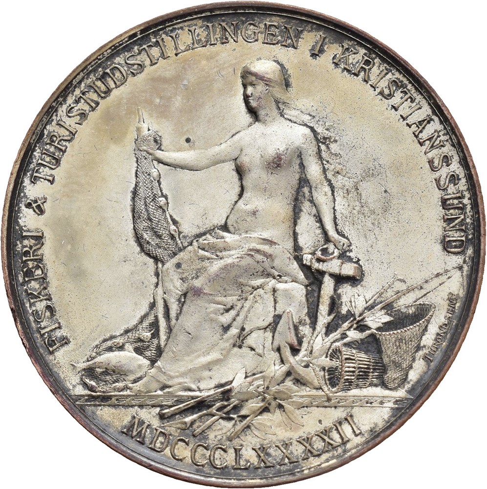 Fiskeri & Turistutstillingen i Kristiansund 1892. Throndsen. Forsølvet bronse. 45 mm; 41,09 g
