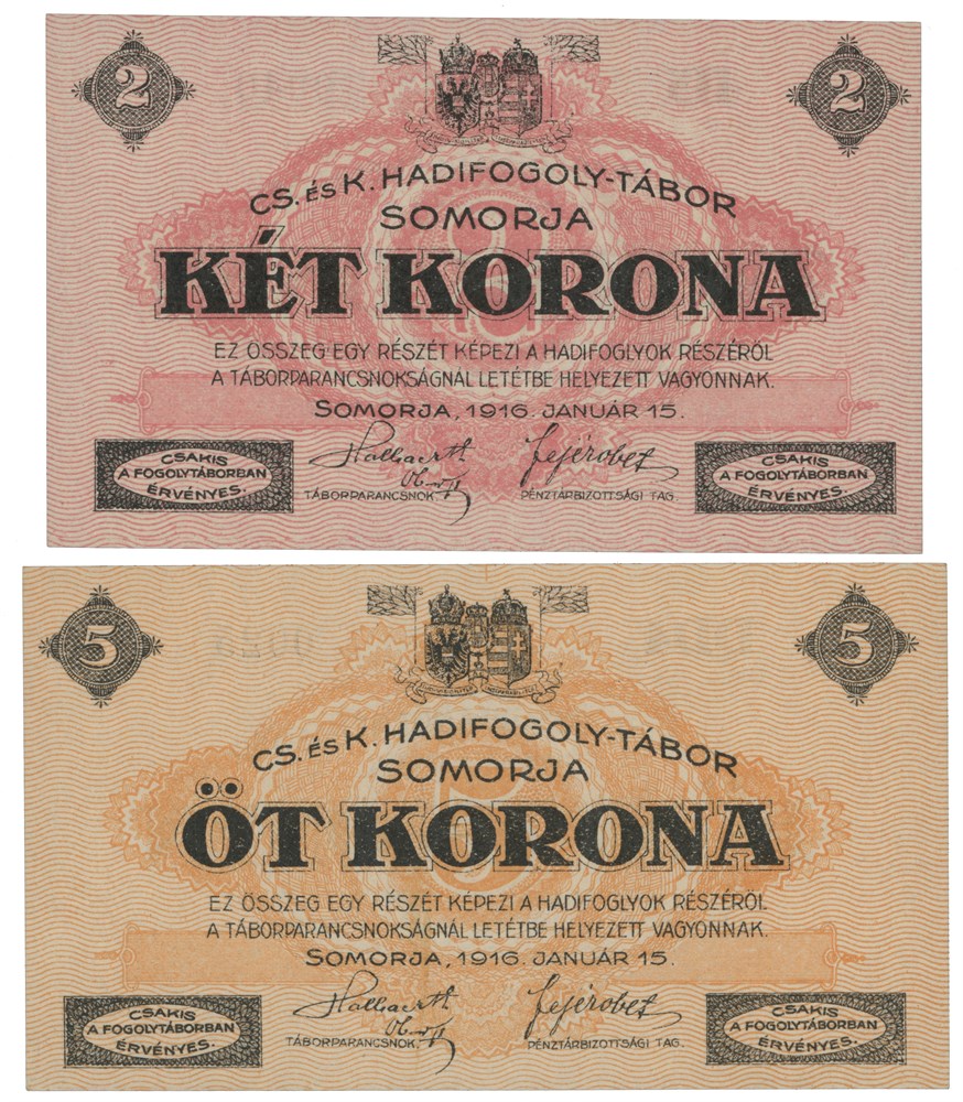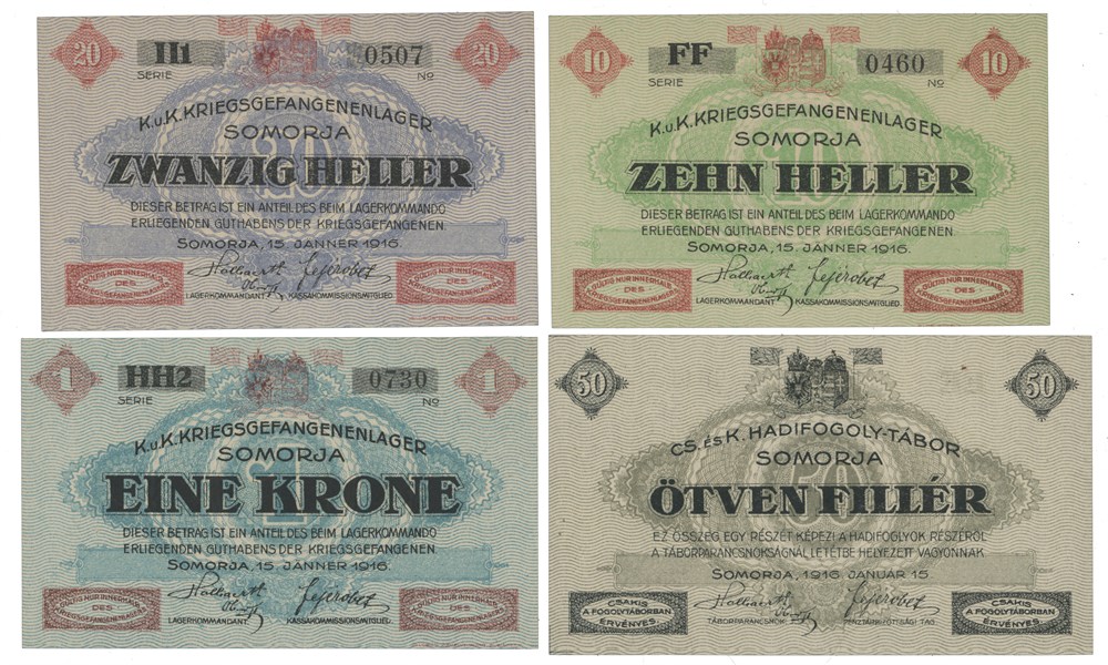 Lot 6 pcs. 10, 20 and 50 heller, 1, 2 and 5 kronen, Somorja 15.1.1916.