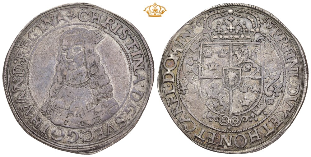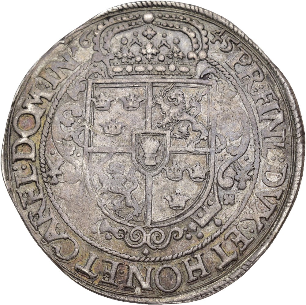 Riksdaler 1645 (28.15 g). Riga mint. Minor tooling on edge. Rare