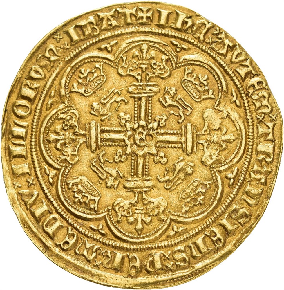 Noble n.d. (35 mm; 7.70 g). London mint. Fourth coinage, Treaty period, struck 1361-1369. Well struck and with an attractive gold toning