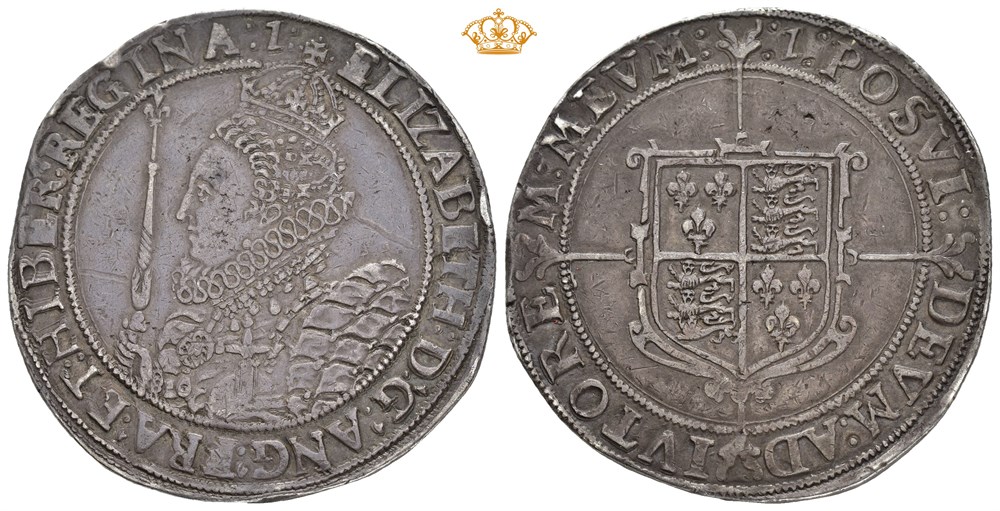 Crown n.d. (30.00 g). London mint. Seventh issue, 1601-1602. Initial mark 1 (1601). Two shallow scratches on obverse and a few old edge marks. Deep attractive cabinet toning