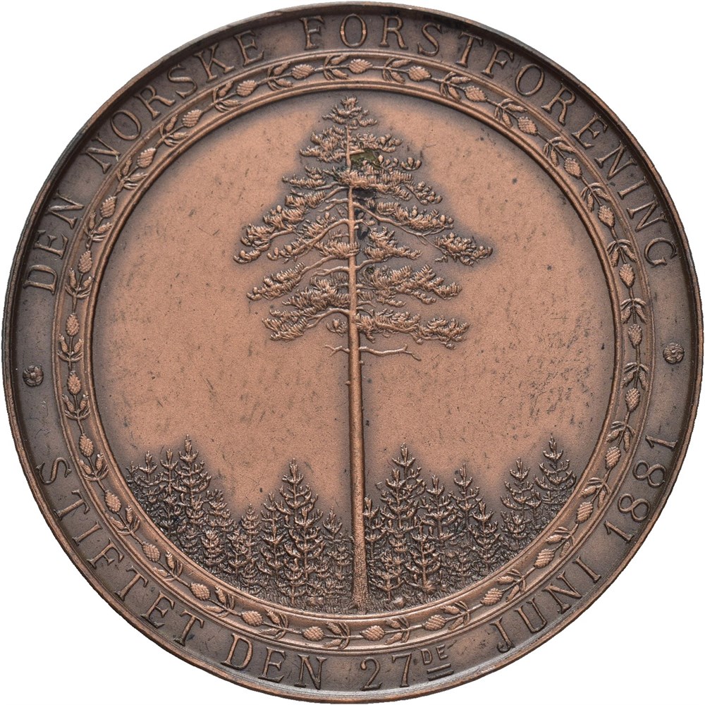 Den Norske Forstforening, Stiftet Den 27de Juni 1881. Throndsen. Bronse 43 mm; 34,21 g. Små flekker og lett renset/minor spots and lightly cleaned