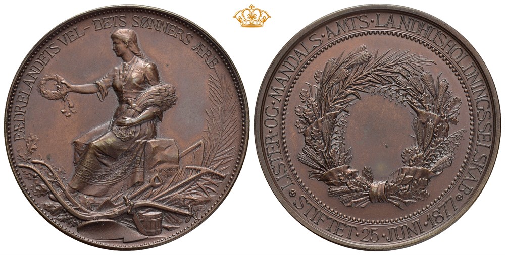 Lister og Mandals Amts Landhusholdningsselskab. Throndsen. Bronse 43 mm; 30,10 g